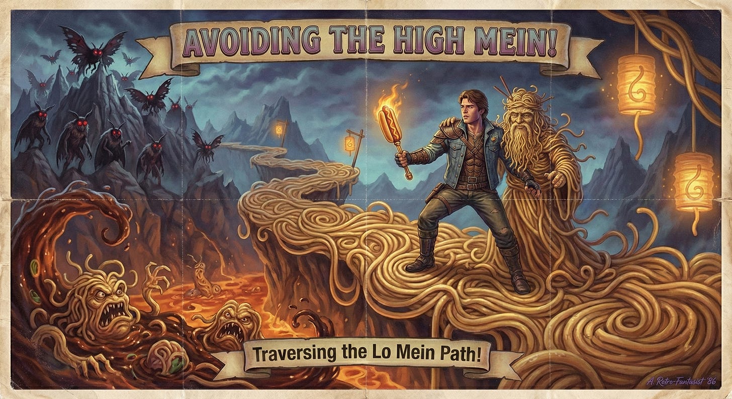 The lo mein path may seem safer, but beware—noodles often conceal surprises. The high mein could be a trap, but sometimes the most perilous routes yield the sweetest revelations. Choose wisely, for the line between guidance and manipulation is thinner than a slice of sauerkraut.