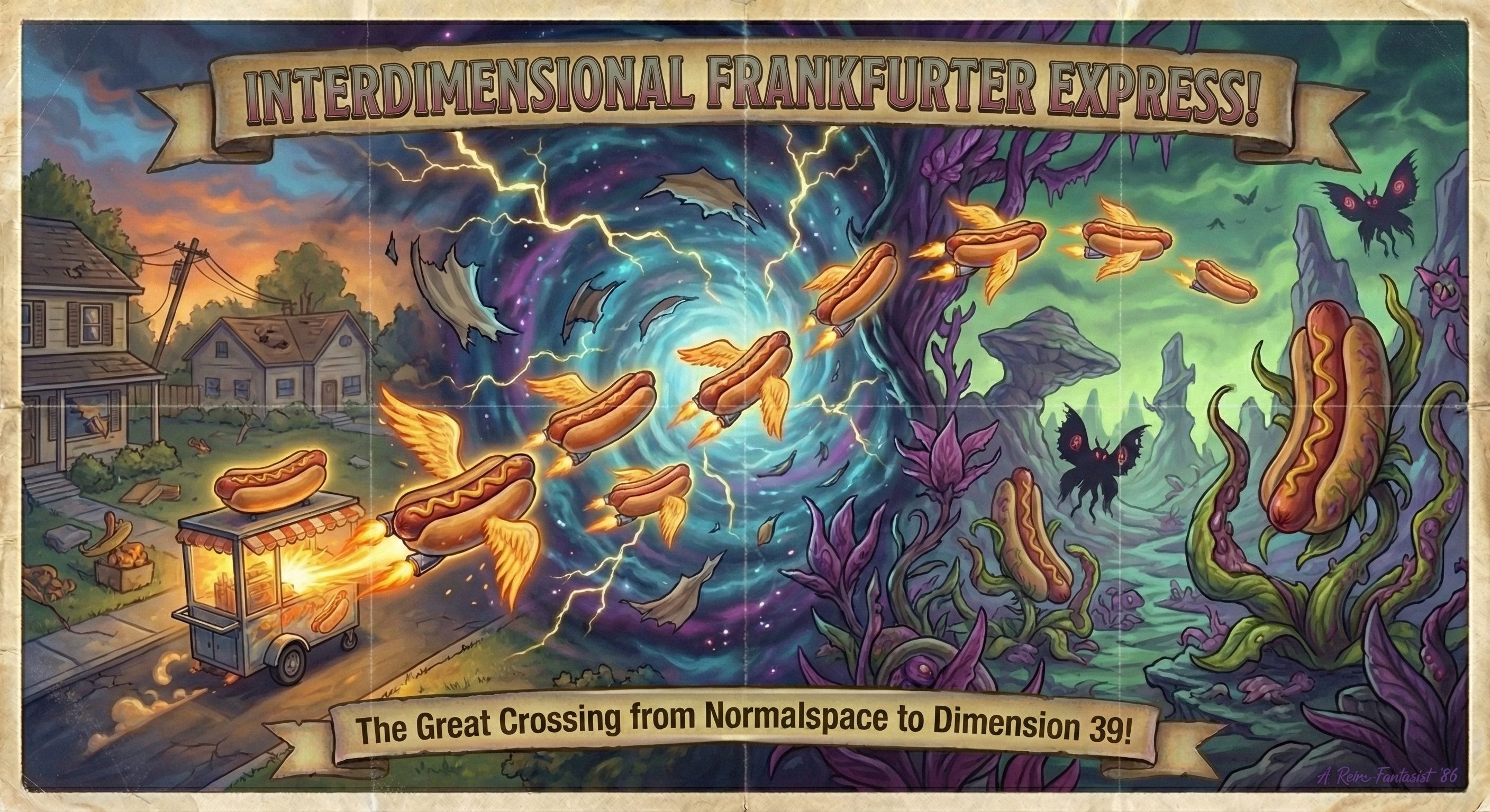 Seriously, though—if this isn’t a metaphor for something else, perhaps it’s time to reconsider your diet. Or your bedtime stories. Either way, keep an eye out for dimensional rifts. And maybe check if your hot dogs are breathing. Just saying. Have you tried asking them about the weather in Dimension 39? Because if they’re going to haunt you, they’d better bring snacks.