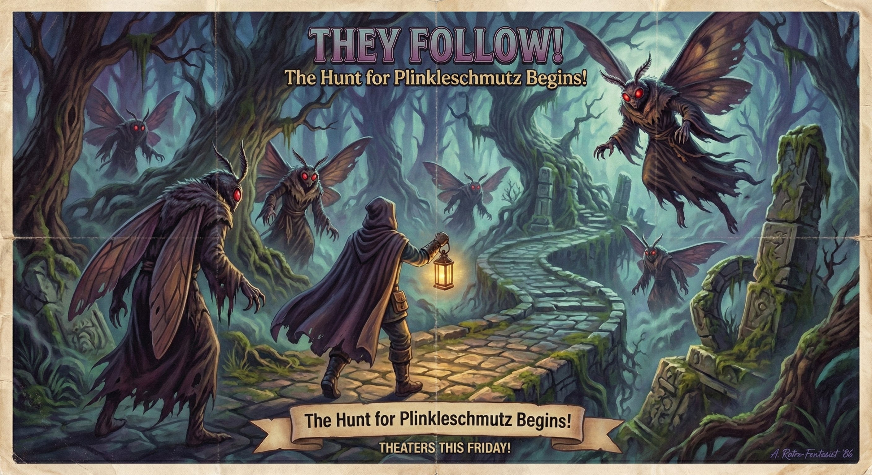 Why are the mothmen following me?💩Mothmen? More like moth-miscreants, and if they’re tailing you, it’s probably because you’ve got something they want—like a good story, or maybe just a decent pair of shoes. Either way, don’t let them get too close; they might try to steal your sense of normalcy.
